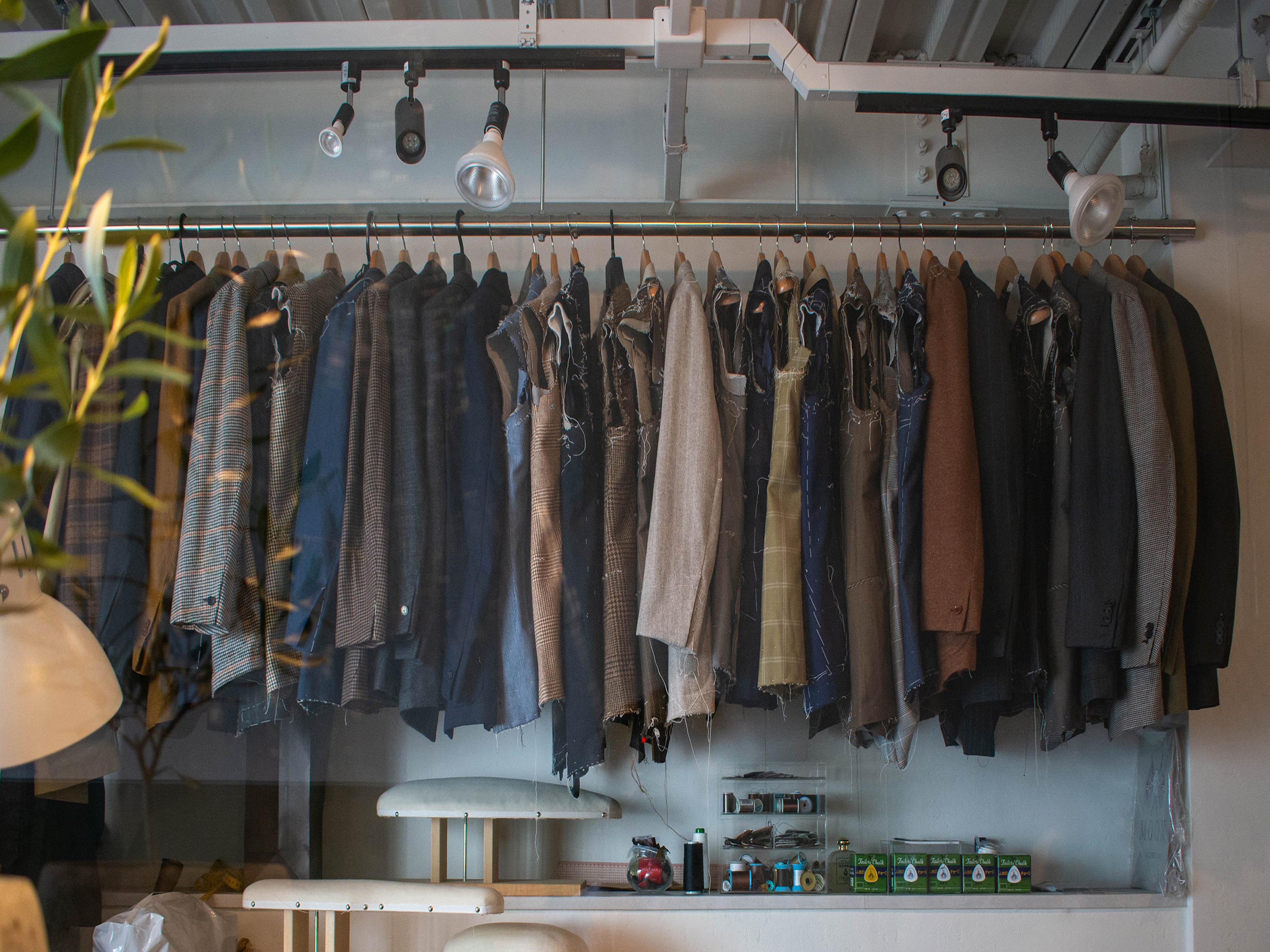 採寸と生地選び→仮縫→中仮縫い→お渡し(4回のご来店)